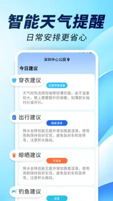 3. 智能贴心建议:融合二十四节气节律,结合时节特点智能推送出行路线、穿搭、防护与活动建议,贴心又实用。