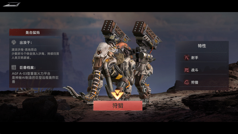 3、在遭遇机械巨兽后,玩家可进行狩猎;