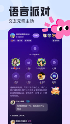 2. 多元场景:为用户打造多元趣味的语聊场景,让用户可随心进入各类主题语音房。