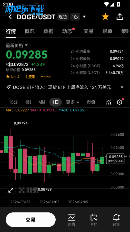 现货交易:支持 BTC、ETH、SOL 等主流币与部分山寨币