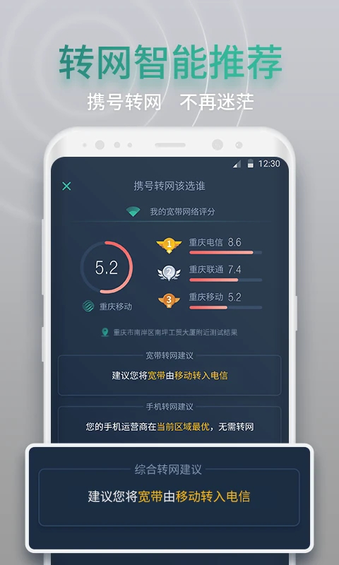 2. 支持随时携号转网,依转网建议和评分轻松选择。