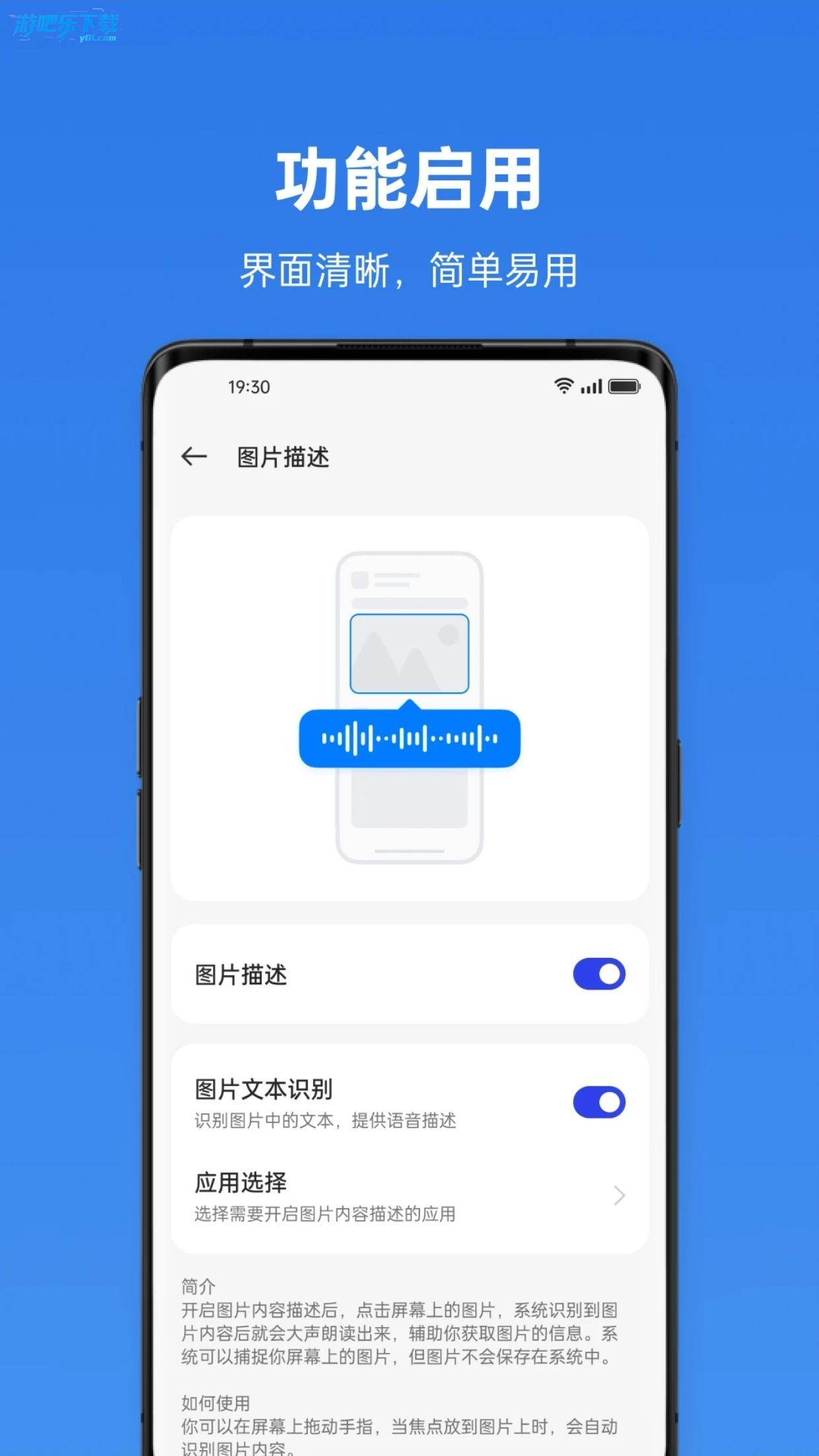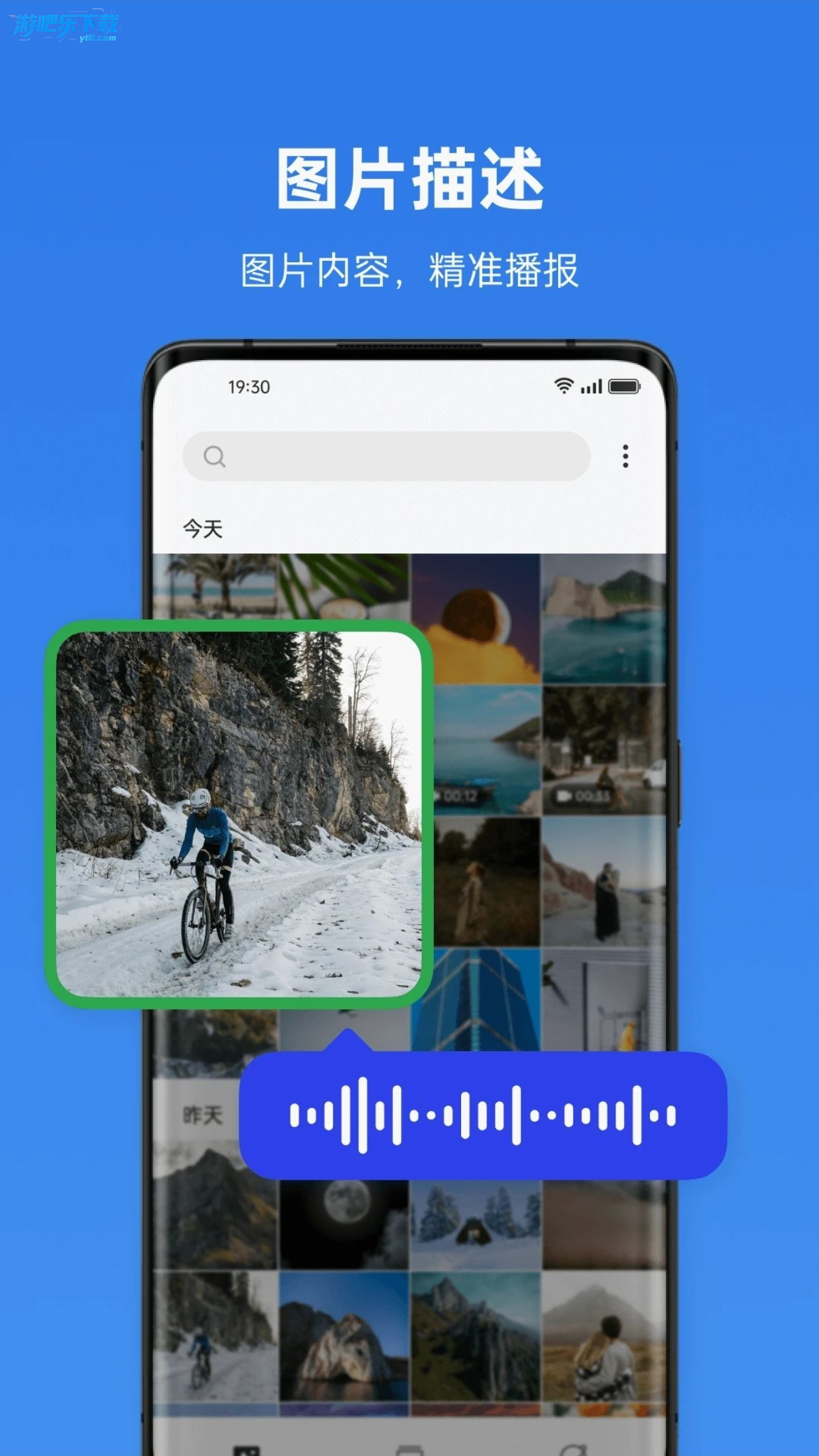 专为视障用户设计,开启后点击屏幕上的图片,系统会自动识别并大声朗读图片内容(如人物、场景、物体等),帮助理解图片信息。