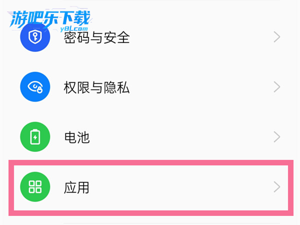 向下滑动找到应用或应用管理选项并点击