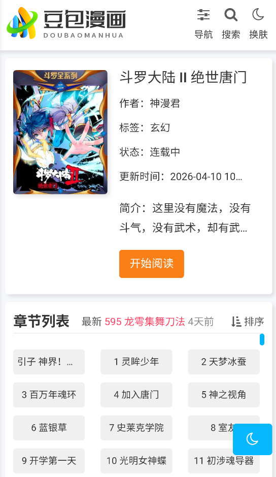 4、用户点看的漫画以后进入详情页,点击开始阅读。