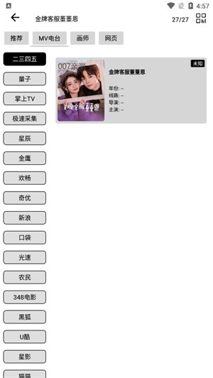 2、点击相应影视资源可选择不同的来源播放。