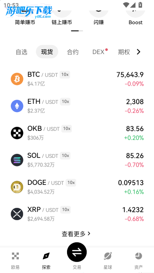 现货:比特币、以太坊等主流币及数百种山寨币、代币。