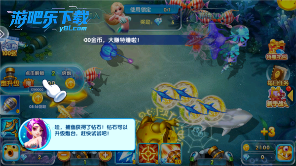 乐乐捕鱼破解版内购破解版是一款很好玩的手机捕鱼游戏。经典千炮街机联网捕鱼、多人同屏、全屏爆金、BOSS 狩猎。千炮万炮、全屏爆机、龙王巨鲸 BOSS、弹头导弹多、每日救济金多、零氪友好!