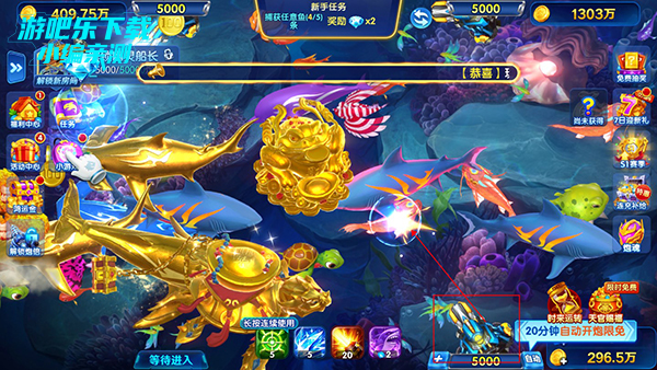 特色专属:黄金鱼、黄金鲨为核心高分鱼种;高阶 BOSS 包含机械狂鲨、远古神龙、深海海王,击杀掉落高额金币与稀有道具。