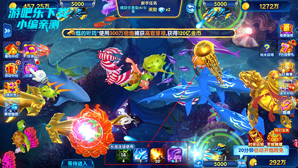 经典深海场:基础日常房间,鱼群平稳,适合攒金币、新手发育。