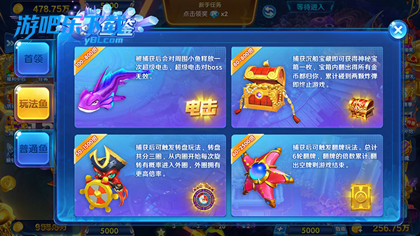 高倍黄金场:黄金鱼、BOSS 刷新密集,倍率上限更高,收益上限大。