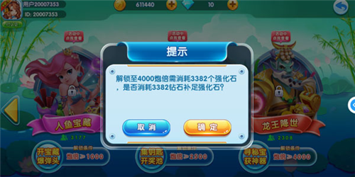 1、金手指捕鱼炮台升级需要用到强化石,强化石不足可以直接用钻石代替。