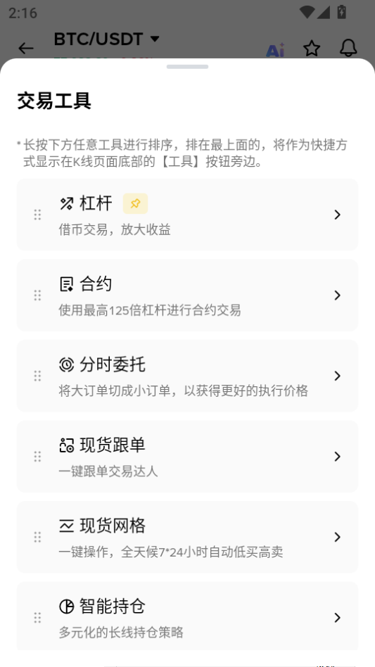现货交易:主流币 / 山寨币币币交易。