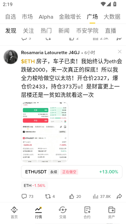 下载进入binan交易所软件,点击行情