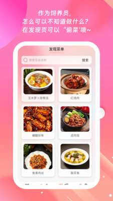 2. 其中饲养员可创建吃货菜单,还有有趣随机菜单选择及发现菜单功能。