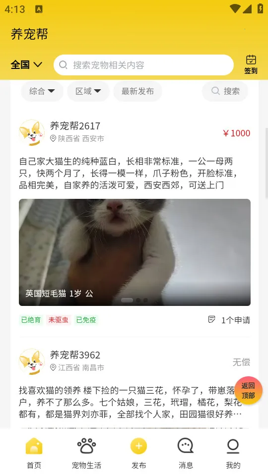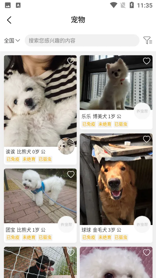 1. 养宠帮专注宠物服务,涵盖领养、托运等多项内容。