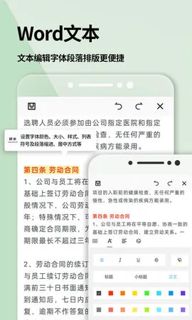 你是否在手机上急需一个好用的Word文档编辑器?别愁啦!咱有超棒的选择。有这样一款移动端文档编辑制作软件,它功能超强大。能创建编辑Word文档、Excel表格、PPT文稿、PDF等,还能导入本地相应文档进行编辑修改。它具备AI功能,能一键写稿,智能生成PPT。操作简单,兼容wpsoffice、腾讯文档、金山文档等主流办公软件。文本编辑样式丰富,有段落样式、字体列表、图文排版。还有丰富的Word、PPT、Excel模板,能快捷使用,高效高质量制作,节省办公成本。支持多重数据存储保存,文档本地与云端双存储,安全可靠。提供全套office办公组件,还能自由分享到企业微信、QQ、钉钉、腾讯会议等APP查看交流。这下找手机Word文档编辑器的问题轻松解决啦,赶紧试试吧!