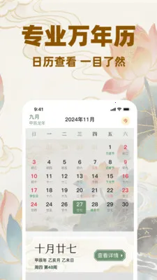 2、全面生活辅助:提前规划节假日安排,实时掌握节气变化,还能依据传统黄历结合现代需求提供每日运势参考,科学助力日程安排。