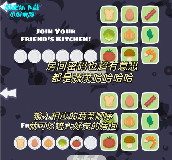 3、其他玩家直接点击"JOIN"后输入对应的食物图标,加入房间即可体验多人联机的快乐。