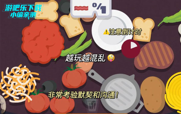 3、越到后面菜品会越来越多,你的桌子会变得非常凌乱,找到所需菜品的难度也会越来越高,只要队友之间配合默契,还是能够快速通关滴~
