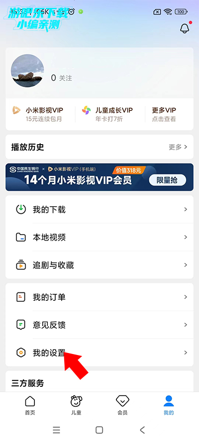 1、打开小米视频app之后,点击右下角“我的”进入个人界面