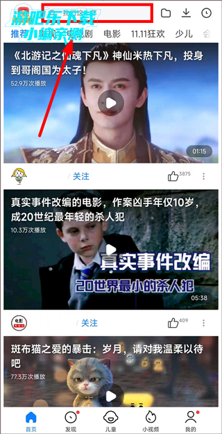 1、打开登录小米视频最新版,点击上方【搜索】查找喜欢的视频或节目