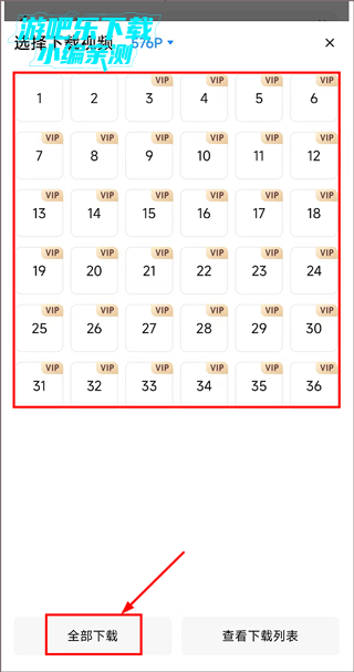 3、勾选需要下载缓存的剧集,或是点击【全部下载】
