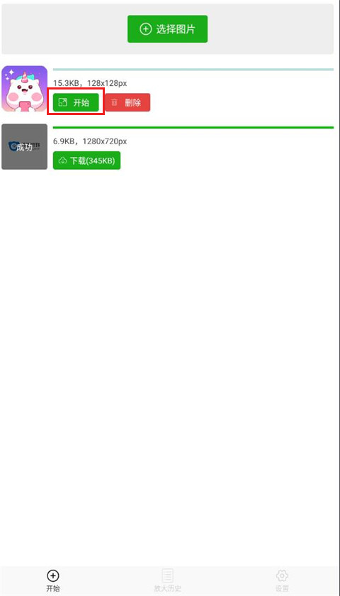 2、选择好图片后,图片就会出现在列表里,点击开始按钮