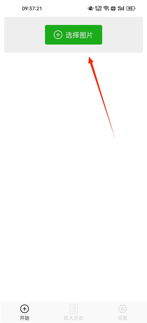 1、打开软件,点击选择图片,从手机相册里选择一张要放大的图片