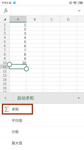 3、点击电子表格界面,数据列于单元格,自动求和功能显眼,另有均值、计数等计算选项。