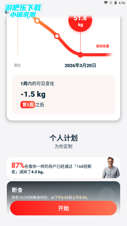 168轻断食app安卓版是一款很流行的轻食断食软件,它会根据你的身体状况,建议你每天、每周、28天的断食计划,跟踪你的饮食状况,帮助你减肥,减肥,有兴趣的朋友赶快下载。