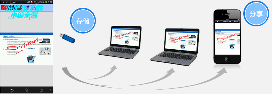 您可以通过 Iprojection 在智能设备上进行批注,并分享您的会议批注内容,并进行存储.