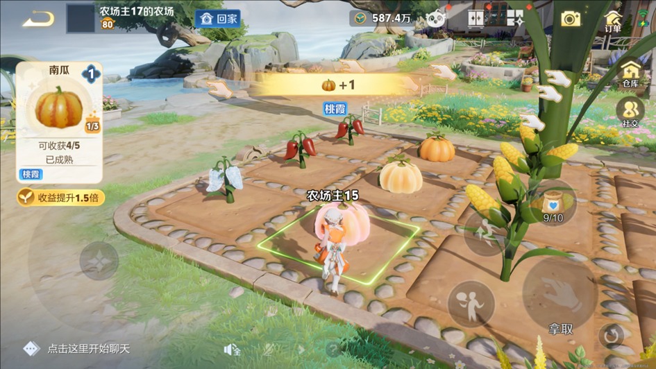 前往好友家中,可以拿取好友已成熟的作物。每名玩家每天拿取的总次数有上限。