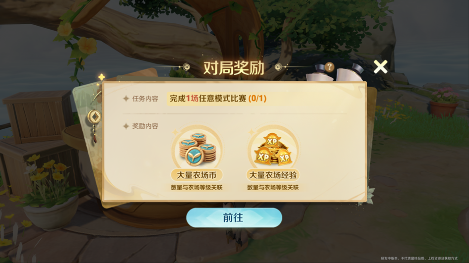 玩农场也不要忘记进行MOBA比赛。每天农场小摊会发布对局奖励任务,玩家完成任意模式对局,即可以在农场小摊处领取大量农场币及农场经验奖励。