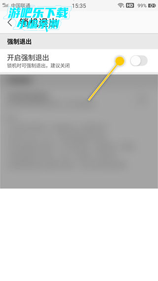 3、在“锁机增强”设置项中,点击“强制退出”列表项。