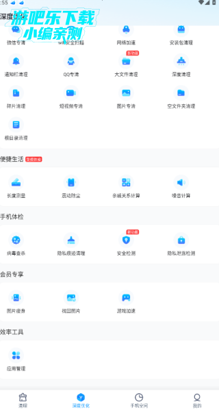 1、点击深度优化,能够在功能列表里面,选择需要的功能;