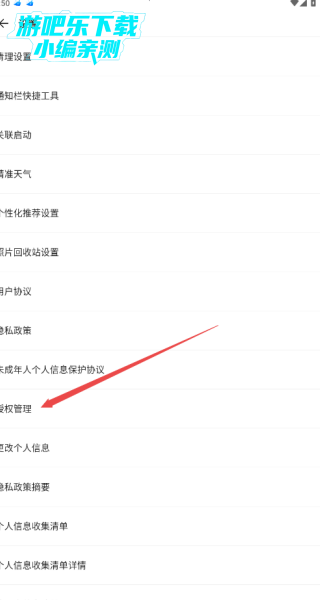 3、在设置列表,往下拉,找到权限管理,点击进入;