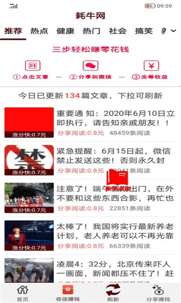 耗牛网安卓版是一款阅读就能赚钱的软件,同时随时随地通过阅读来进行赚钱,感兴趣的文章就能获得文章奖励,阅读的人越多,奖励的也就越多,零成本零投入,让你轻松进行收益,感兴趣的话就来下载吧。