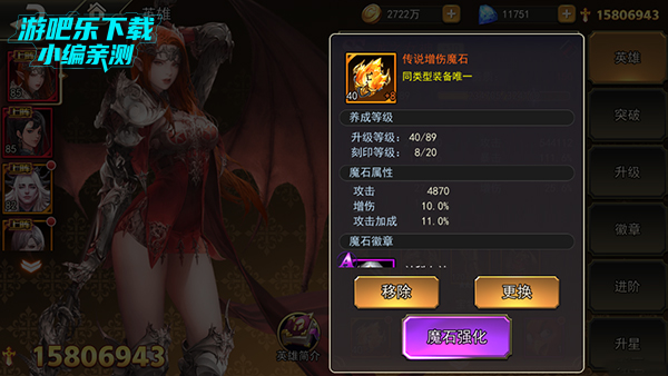 首先魔石是徽章系统中非常重要的一部分,每个英雄都有自己专属的魔石,搭配合适的魔石能激活徽章属性。而每个英雄激活的属性也不尽相同,血腥之雨、神秘女神之类的进攻型英雄相对应的徽章可以提高攻击力,银龙公主、精灵祭司这类的防御型英雄激活徽章则可以增加血量。所以大家一定要记得在魔石系统解锁时第一时间搭配正确的魔石,将输出最大化。