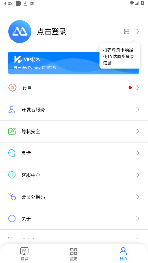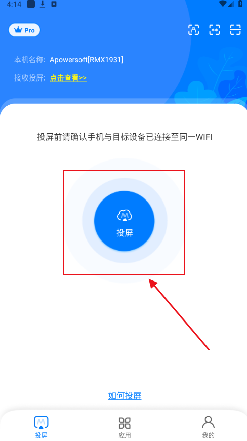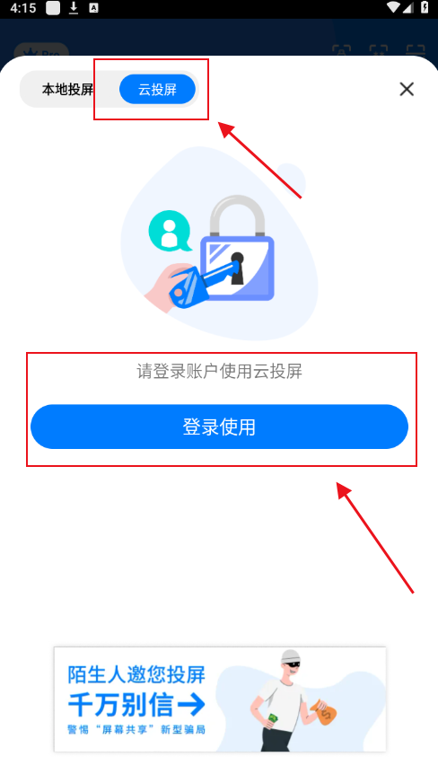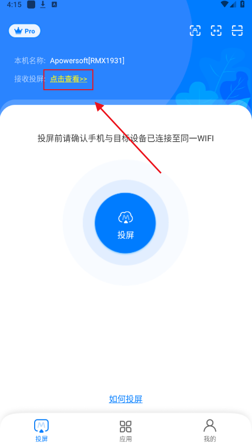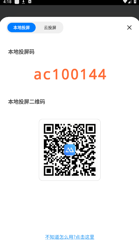 4、每个手机的扫屏码不同,可以查看本机的投屏码和云投屏码;
