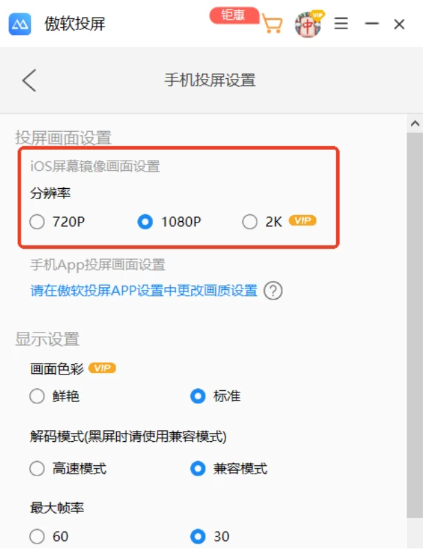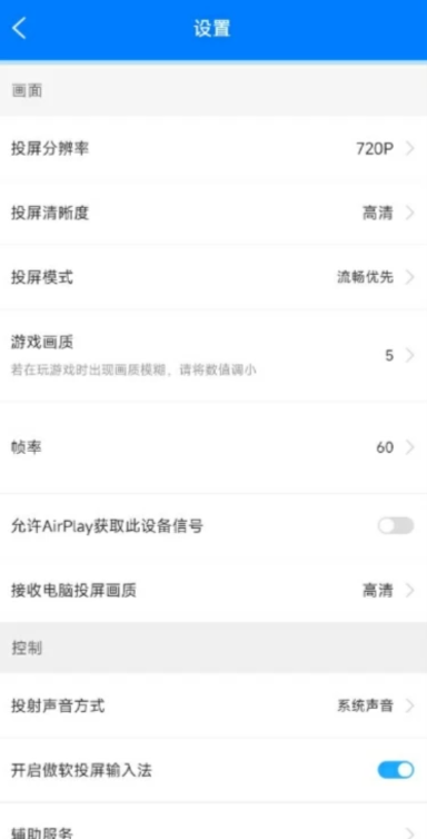 2、检查手机APP投屏设置中画面设置(投屏分辨率、投屏清晰度)是否偏低,可以根据您当前网络状况进行适当调节,平衡画质与画面流畅度。