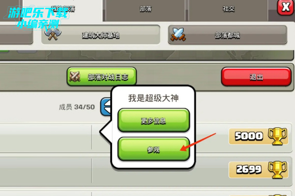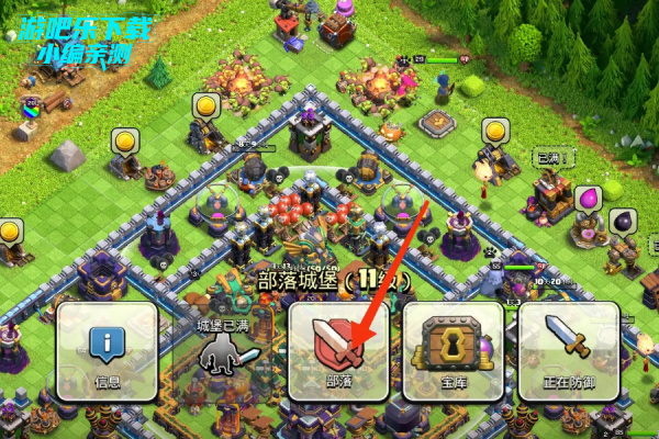 1、在游戏主页找到部落城堡建筑,点击【部落】。