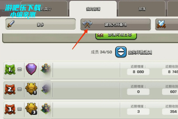 2、进入部落界面后,点击【建筑大师基地】。