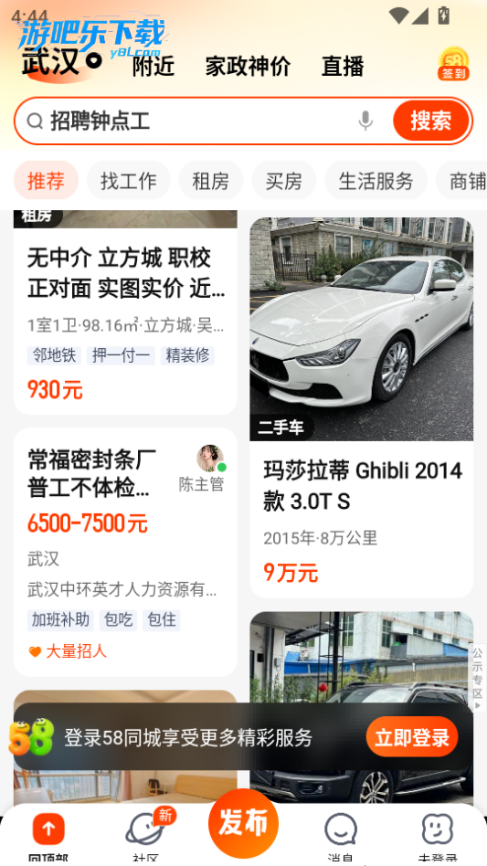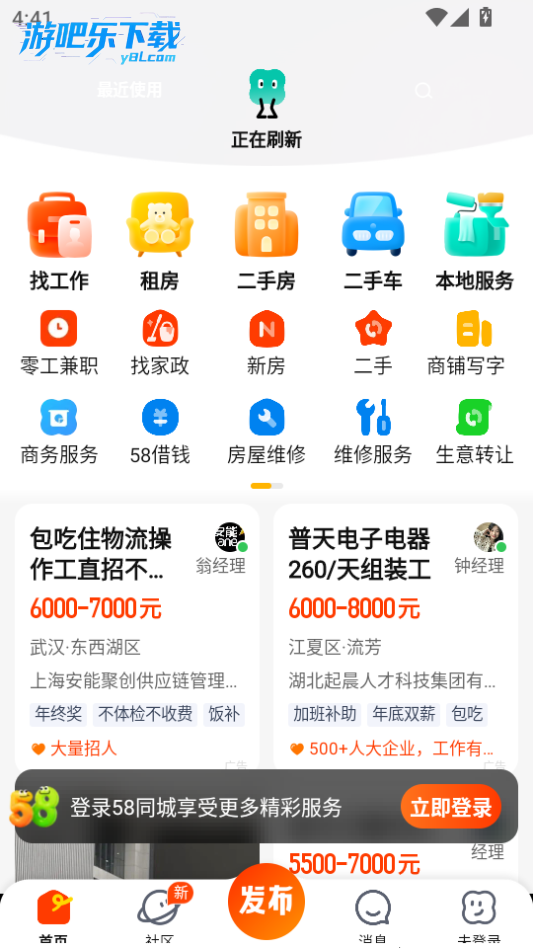 58同城APP是一款便捷的生活服务平台,提供了丰富的生活信息资源,包括房屋租售、二手买卖、招聘求职、买卖二手车等。用户可以在应用中直接查询和发布各种生活信息,覆盖全国各大中城市,汇聚大量个人和商家信息,为用户提供真实、高效、免费的本地生活服务。