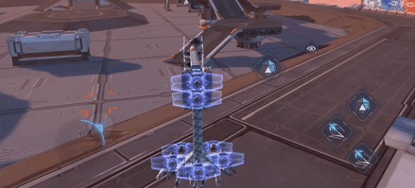 其次是我们在前面提到的磁暴,在核心的前面方块摆放一个盾上方就是一个磁爆,防止敌人落下的时候用钩爪爬上来。