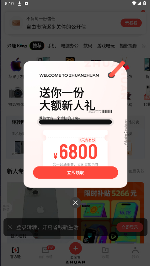 转转APP作为专业的二手交易平台,提供全面的闲置物品交易服务。全国3大质检中心,2000+真人验机团队,一物一验,提供详细质检报告,先验货后付款,确保交易安全可靠。