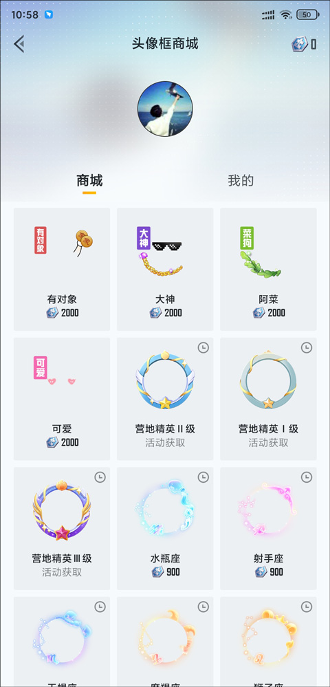 点击和平营地的头像进入头像框商城,就可以使用装饰碎片兑换头像框了。