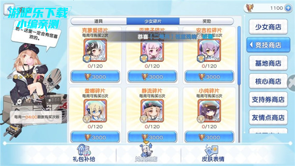 这个游戏的角色除了抽卡以外还专门开设了少女商店和竞技商店换取(可以满足像我一样的非洲大酋长)如图: