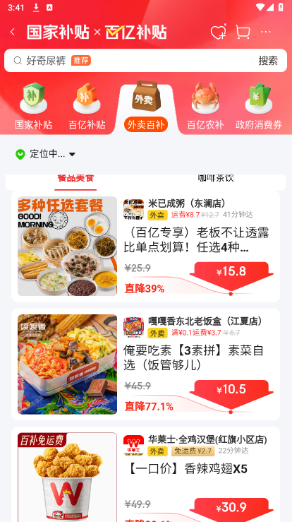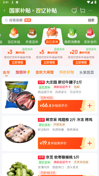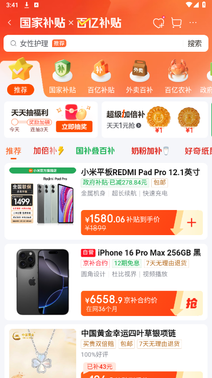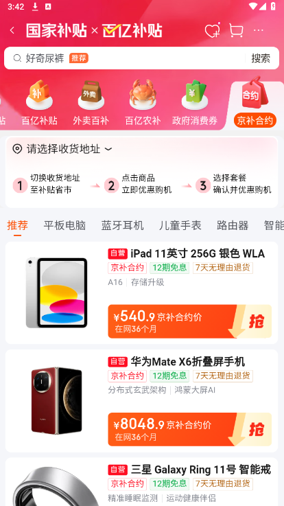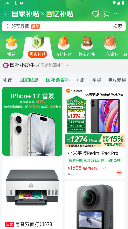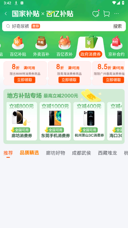 打开京东APP,搜索关键词"3C国补"、"家电国补"或"地区+国补"(如"北京家电国补")