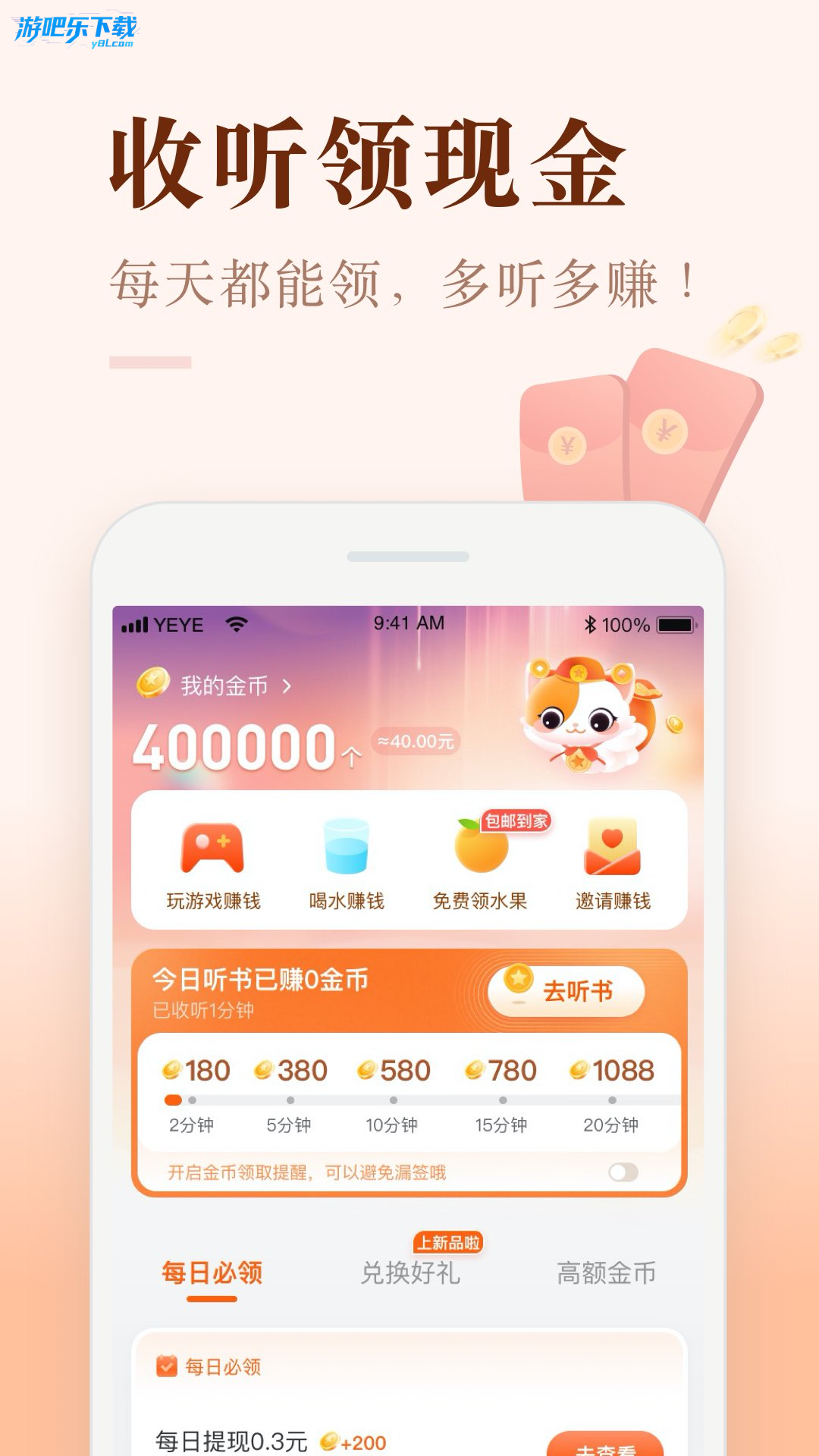 喜马拉雅听书赚钱的软件叫做喜马拉雅极速版,每天可以通过签到和听书来获得金币,每天签到都会送一定的金币,同时你听书十分钟就能够获得100金币,听书的时长越久,获得的金币数量也就越多