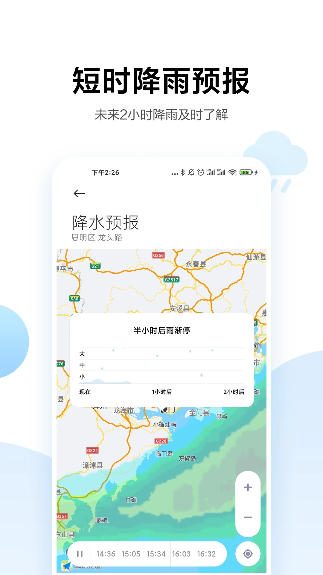 滑动天气区域:查看未来 3 小时短时预报